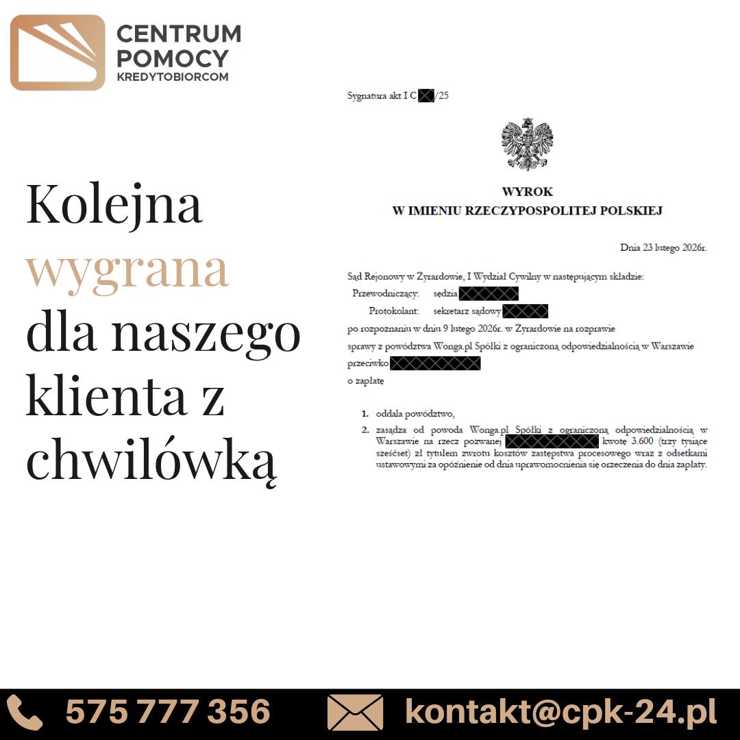 To kolejny przykład, że w sporach z tzw. „chwilówkami” warto podjąć skuteczną obronę. Nie każde roszczenie jest zasadne, a dokładna analiza umowy i dokumentacji może całkowicie zmienić wynik sprawy.